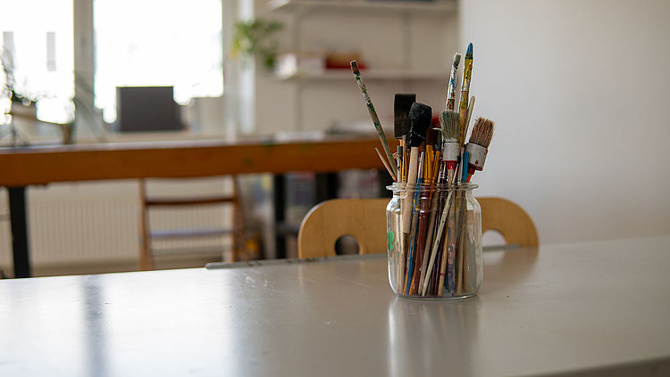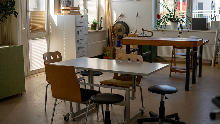 Im großzügigen Werkraum unserer Praxis werden tolle und schöne Arbeiten hergestellt. Unsere Patient*innen lassen hier ihrer Kreativität freien Lauf. Wir verfügen über Staffeleien, Leinwände, Peddigrohr, eine Werkbank, allerhand Werkzeug und Material zum Bauen, Werken und Gestalten.