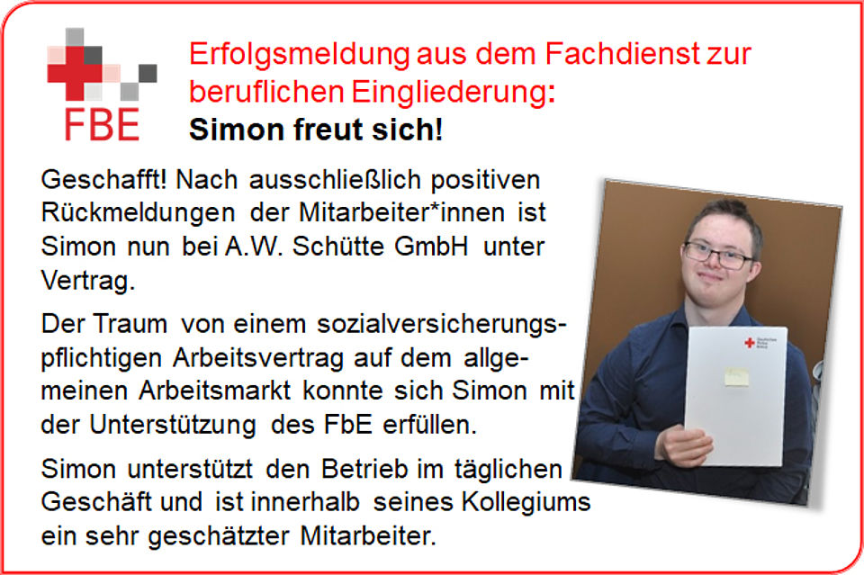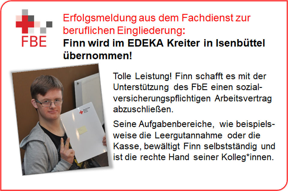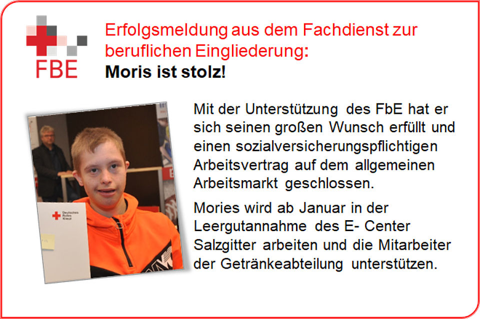 Wenn Sie in einer Werkstatt für behinderte Menschen arbeiten, aber lieber auf dem „normalen“ Arbeitsmarkt beschäftigt sein wollen, dann können Sie in Niedersachsen das Budget für Arbeit beantragen. Mit dem betrieblichen Arbeitsbereich bieten wir Menschen mit Behinderung durch Durchführung von Praktika Unterstützung bei der Orientierung und Qualifizierung in Betrieben des allgemeinen Arbeitsmarktes mit dem Ziel eine sozialversicherungspflichtige Beschäftigung auf dem allgemeinen Arbeitsmarkt zu erlangen, die durch das Budget für Arbeit gefördert wird. >> mehr Infomationen zum Betrieblichen Arbeitsbereich