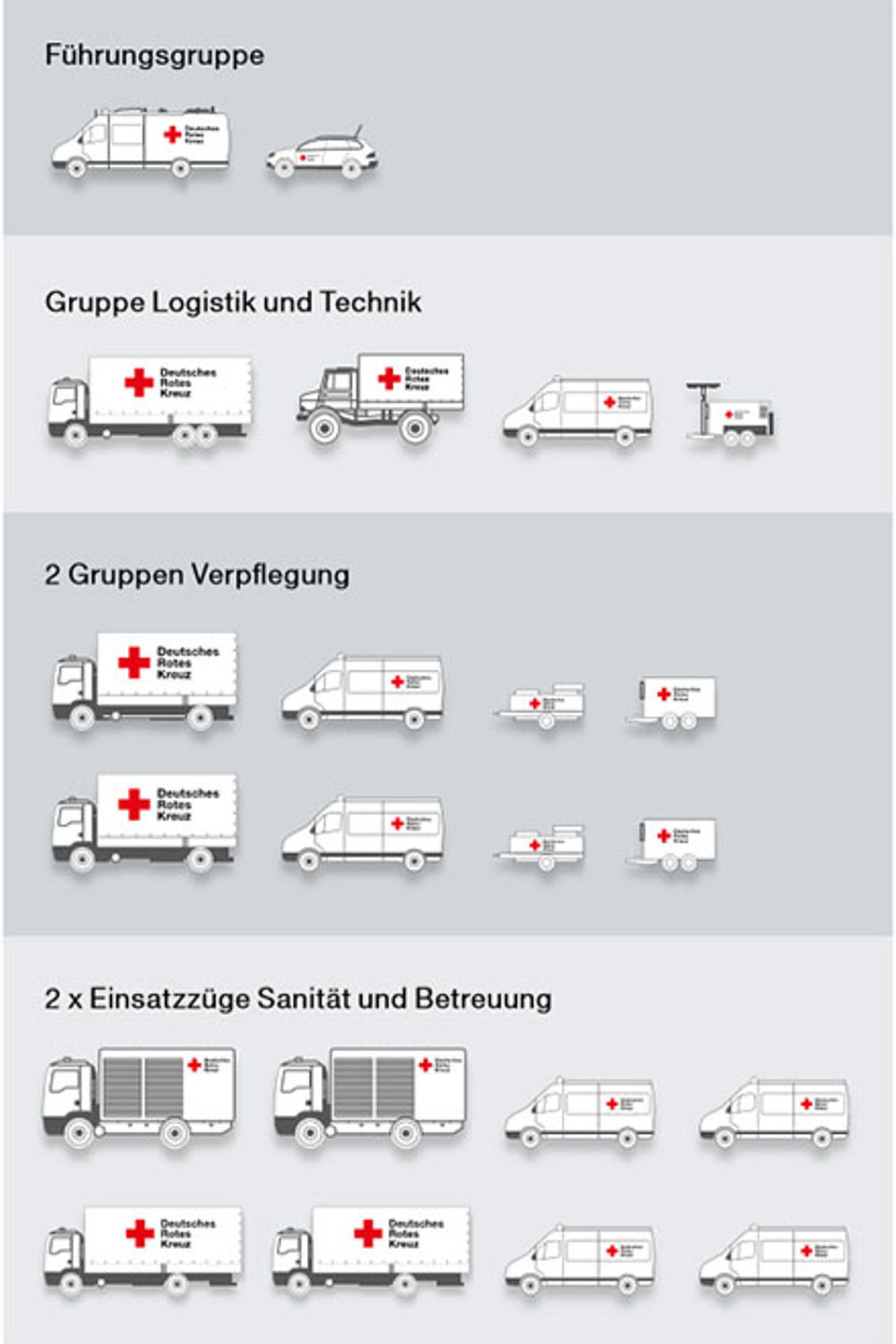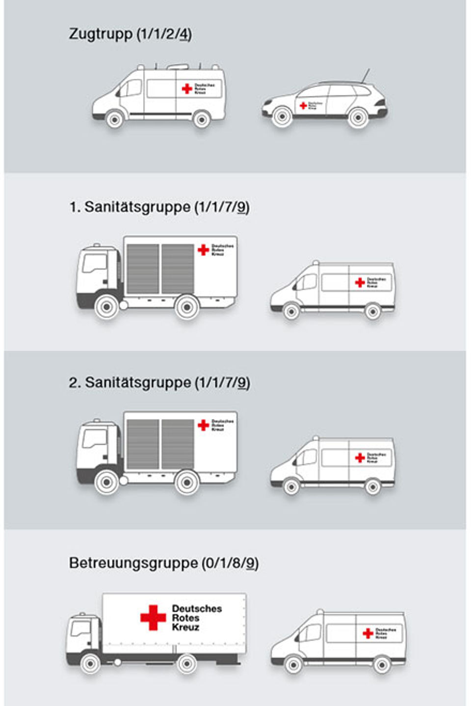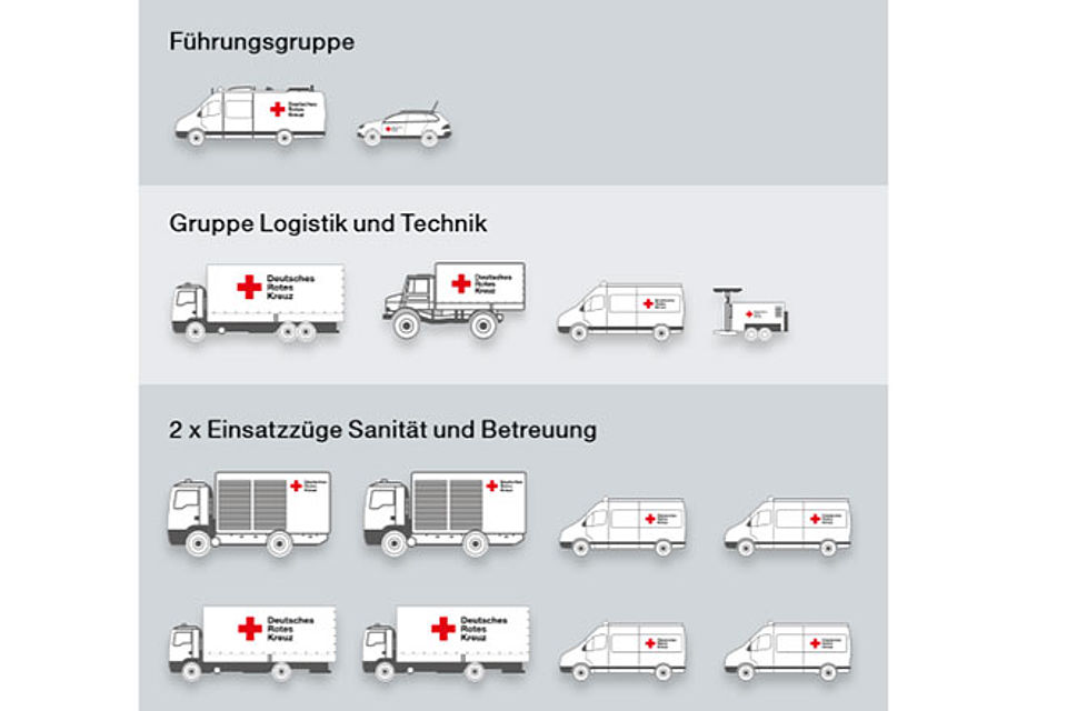 Der Einsatzzug Sanität und Betreuung besteht aus dem Zugtrupp, zwei Sanitätsgruppen und der Betreuungsgruppe.