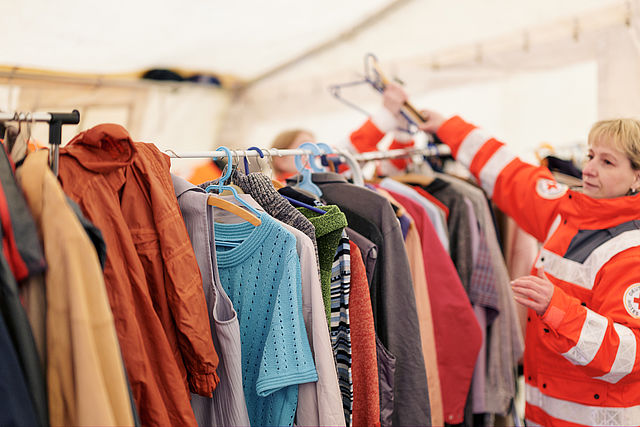 Menschen in Notlagen und schwierigen sozialen Situationen erhalten in der DRK-Kleiderkammer Am Exer in Wolfenbüttel Kleidung und Schuhe.