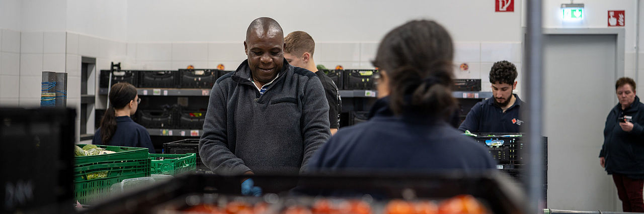 Sie können für einen kleinen Betrag Lebensmittel bei der Tafel abholen.